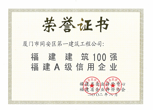 2002福建建筑100強 福建A級信用企業(yè)