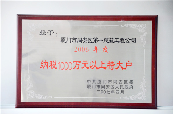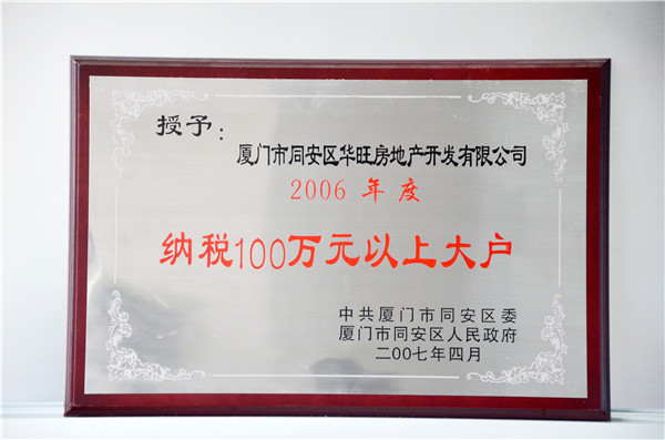 2006華旺房地產(chǎn)開發(fā)有限公司獲得”2006年度納稅100萬元以上大戶“榮譽稱號