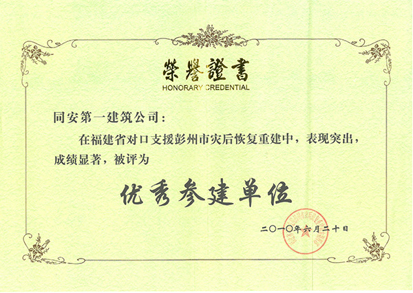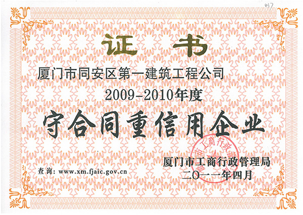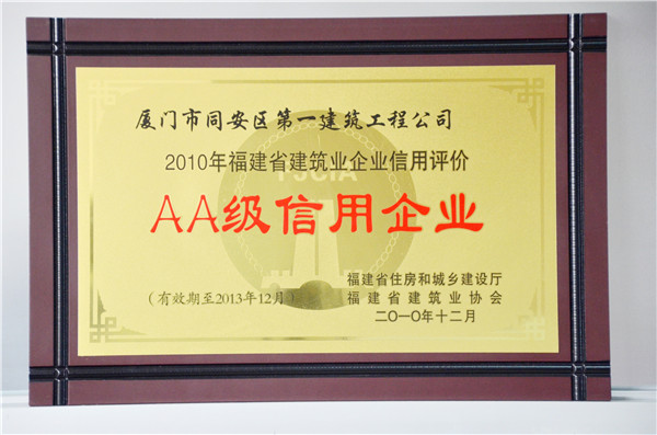 2010年度福建省建筑業(yè)企業(yè)信用評(píng)價(jià)2A級(jí)信用企業(yè)