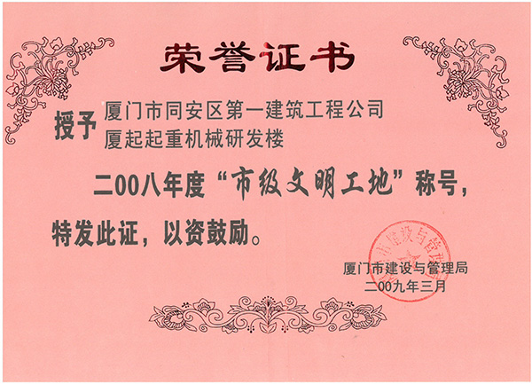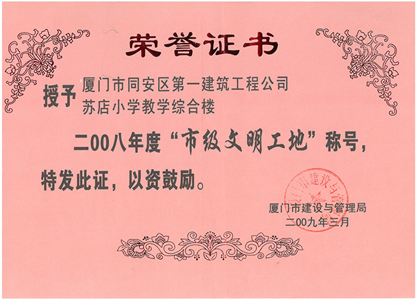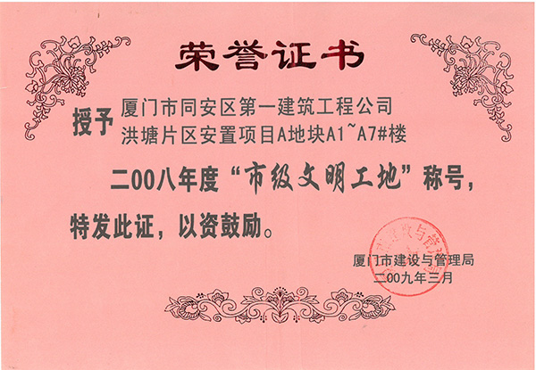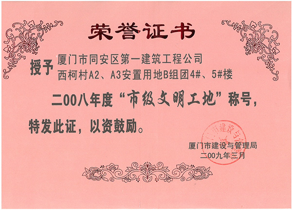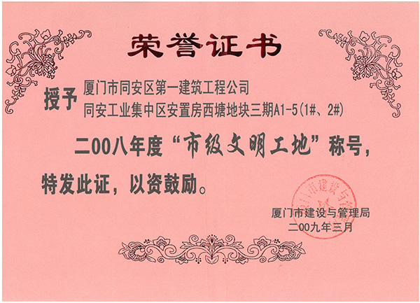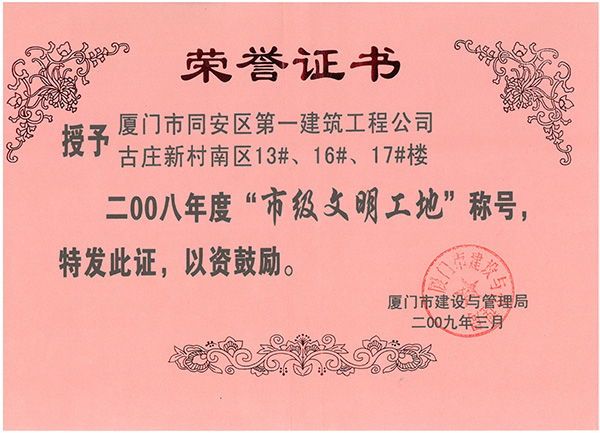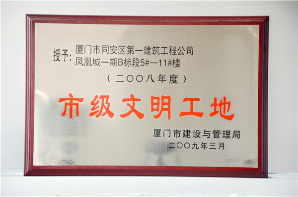 2008年度“市級(jí)文明工地”鳳凰城一期B標(biāo)段5#-11#樓